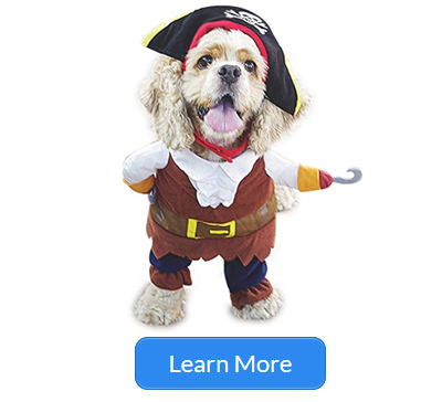 Pirate-themed costumes are always very popular, even more so now that the Pirates of the Caribbean movies are fresh in people’s minds. They are always good for causing some laughs and they make any dog look super cute. Therefore, you shouldn’t be shocked to see a pirate-themed costume on our list looking at the best Halloween costume for dogs.